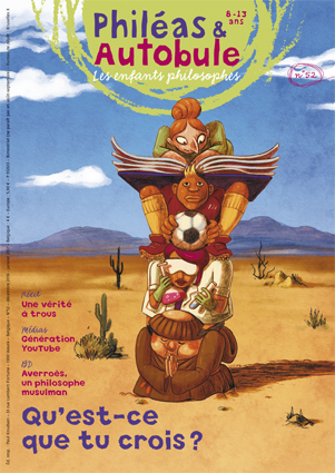 52 - Décembre 2016-Janvier 2017 - Qu'est-ce que tu crois ? [texte imprimé] . - 2016 . - 35 p. : ill. en coul. Les enfants croient en saint Nicolas, en l’amitié pour la vie, en leur bonne étoile, en dieu... Ils commencent par croire ce qu’on leur dit et puis ils construisent leurs propres croyances. Leurs croyances, comme les nôtres, les guident, influencent leurs actions et déterminent leurs choix. Mais que croire ? Ce que dit l’instituteur, le parent, la télé ? Tout est très vite amené à être remis en question, en doute... Ce doute qui nous pousse à nous interroger avant de nous forger de nouvelles croyances. Mais comment choisir celles-ci ? Est-ce que toutes nos croyances se valent ? Les choisissons-nous parce qu’elles nous rassurent, parce qu’il est possible qu’elles soient vraies, parce que ce sont celles de nos parents ou pour d’autres raisons encore ? Dans quelle mesure peut-on imposer nos propres croyances aux autres ou exiger qu’elles soient respectées ? Comme toujours, Philéas et Autobule se posent un nombre incroyable de questions. Langues : Français ( fre)